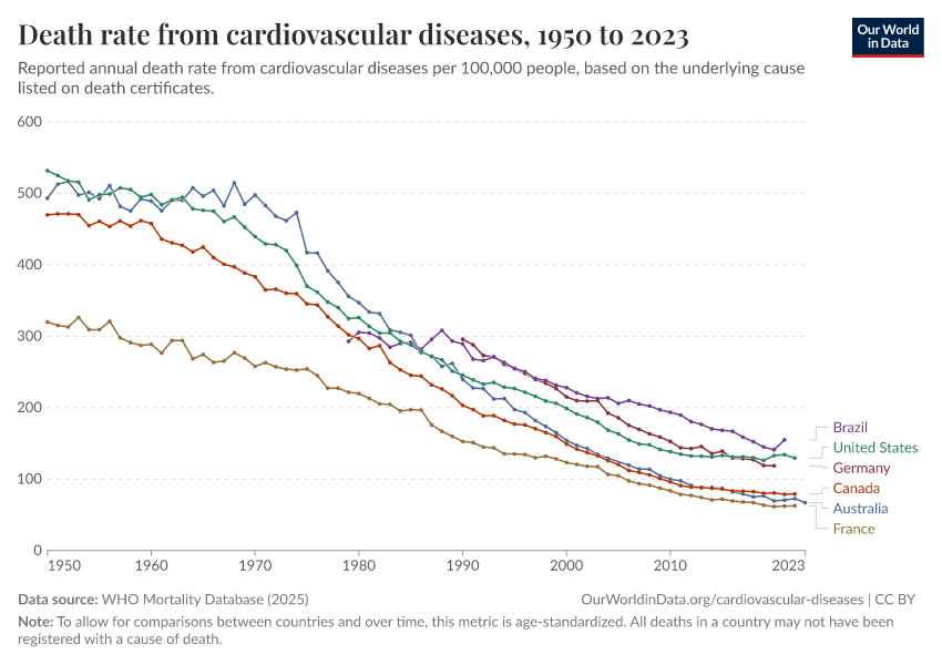 Saloni Dattani (2025) - “Death rates from cardiovascular disease have fallen dramatically — what were the breakthroughs behind this?” Published online at OurWorldinData.org. Retrieved from: 'https://multi-dim-redirects-index.owid.pages.dev/cardiovascular-deaths-decline' [Online Resource]BibTeX citation