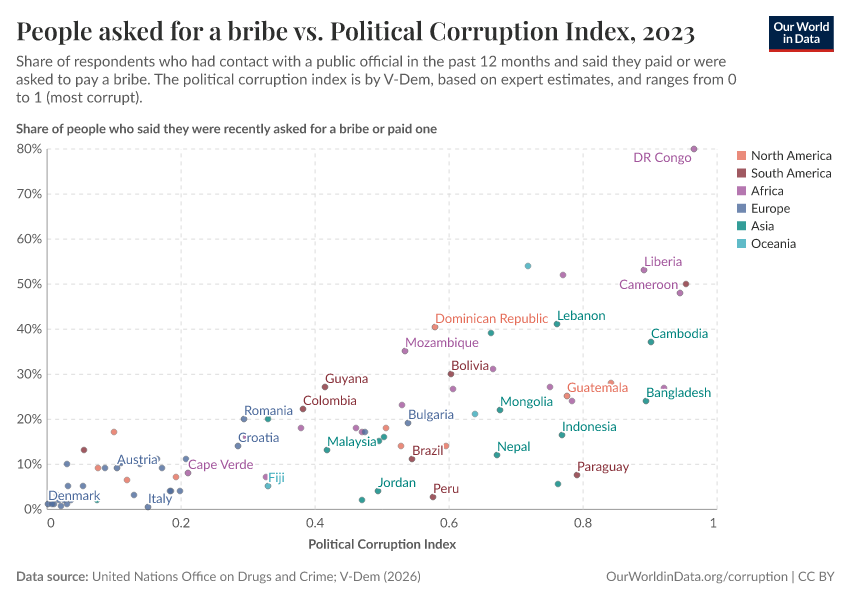Bastian Herre, Veronika Samborska, and Esteban Ortiz-Ospina (2016) - “Corruption” Published online at OurWorldinData.org. Retrieved from: 'https://multi-dim-redirects-index.owid.pages.dev/corruption' [Online Resource]BibTeX citation