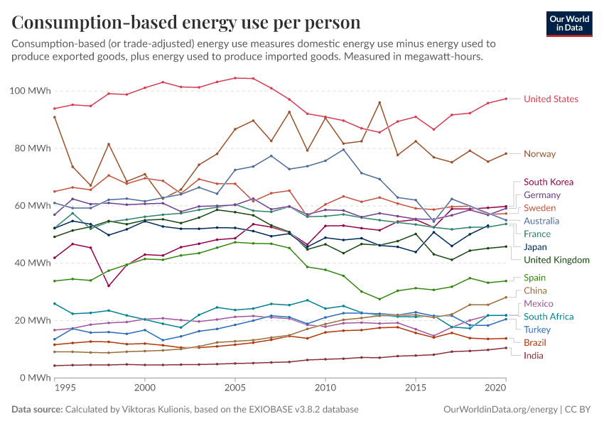 We know this because when we look at production-based electricity or energy use, the differences can be as large as 1000-fold.