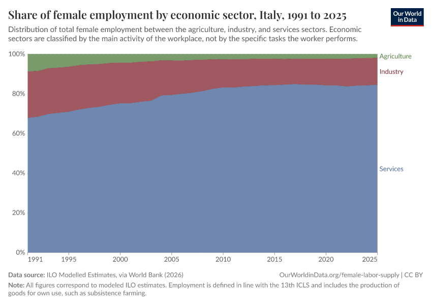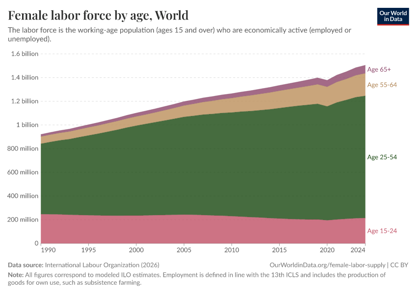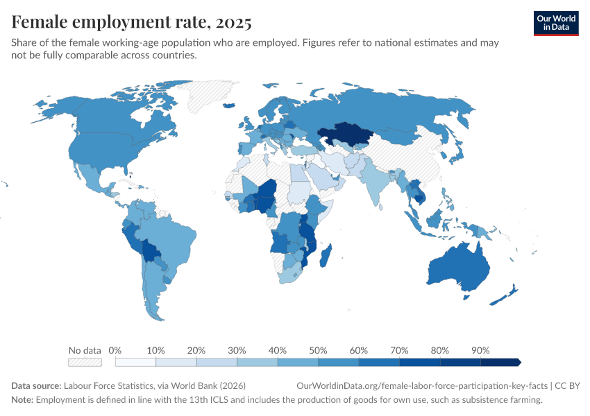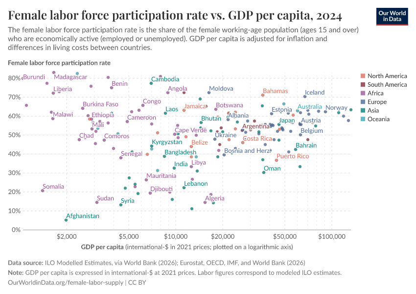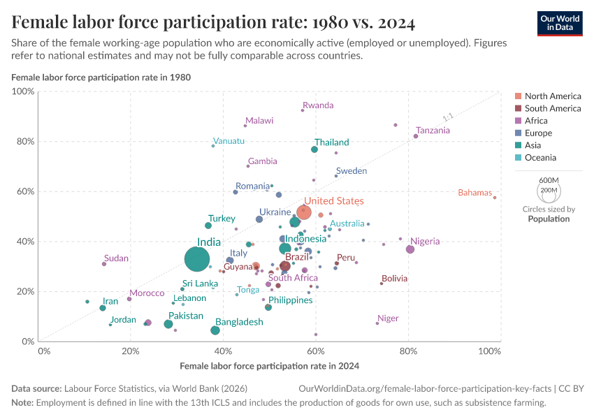 Esteban Ortiz-Ospina, Sandra Tzvetkova, and Max Roser (2018) - “Women's Employment” Published online at OurWorldinData.org. Retrieved from: 'https://multi-dim-redirects-index.owid.pages.dev/female-labor-supply' [Online Resource]BibTeX citation