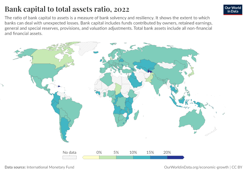 “Data Page: Bank capital to total assets ratio”. Our World in Data (2026). Data adapted from International Monetary Fund. Retrieved from https://multi-dim-redirects-index.owid.pages.dev/grapher/bank-capital-to-total-assets-ratio [online resource]How to cite this data