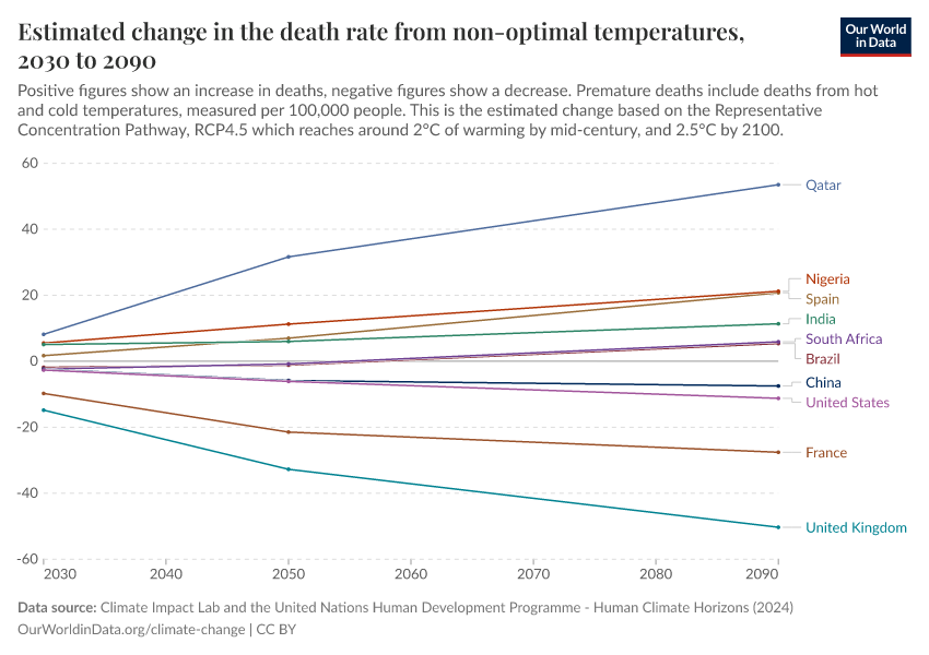 “Data Page: Estimated change in the death rate from non-optimal temperatures”. Our World in Data (2026). Data adapted from Climate Impact Lab and the United Nations Human Development Programme. Retrieved from https://multi-dim-redirects-index.owid.pages.dev/grapher/change-heat-death-rate [online resource]How to cite this data