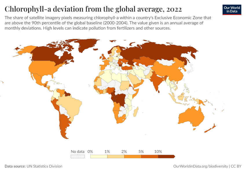 “Data Page: Chlorophyll-a deviation from the global average”. Our World in Data (2026). Data adapted from UN Statistics Division. Retrieved from https://multi-dim-redirects-index.owid.pages.dev/grapher/chlorophyll-a-deviation-from-the-global-average [online resource]How to cite this data