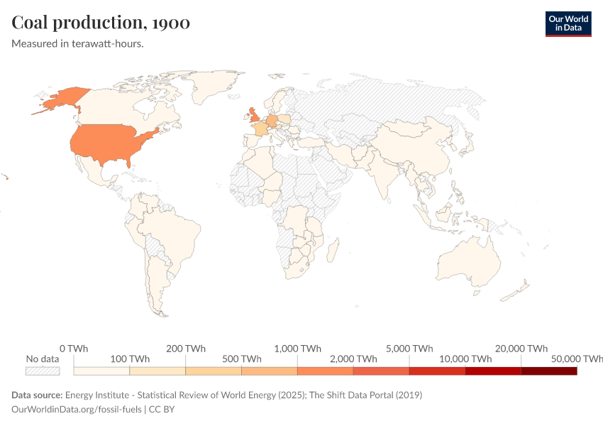 Energy Institute - Statistical Review of World Energy (2025); The Shift Data Portal (2019) – with major processing by Our World in Data. “Coal production” [dataset]. Energy Institute, “Statistical Review of World Energy”; The Shift Data Portal, “Energy production from fossil fuels” [original data]. Retrieved January 8, 2026 from https://multi-dim-redirects-index.owid.pages.dev/grapher/coal-production-by-country