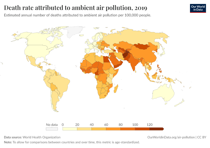 “Data Page: Death rate attributed to ambient air pollution”. Our World in Data (2026). Data adapted from World Health Organization. Retrieved from https://multi-dim-redirects-index.owid.pages.dev/grapher/death-rate-ambient-air-pollution [online resource]How to cite this data