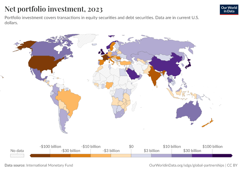 International Monetary Fund – processed by Our World in Data. “Net portfolio investment” [dataset]. International Monetary Fund, “International Monetary Fund, Balance of Payments Statistics Yearbook and data files.” [original data]. Retrieved January 8, 2026 from https://multi-dim-redirects-index.owid.pages.dev/grapher/net-portfolio-investment