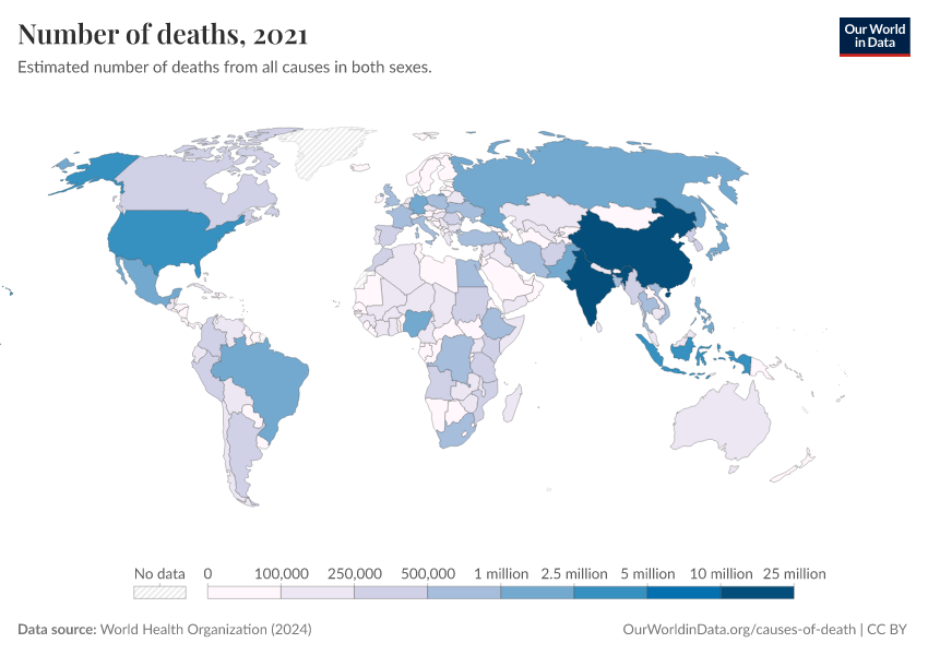 World Health Organization (2024) – with major processing by Our World in Data. “Number of deaths” [dataset]. World Health Organization, “Global Health Estimates” [original data]. Retrieved January 8, 2026 from https://multi-dim-redirects-index.owid.pages.dev/grapher/number-of-deaths-who