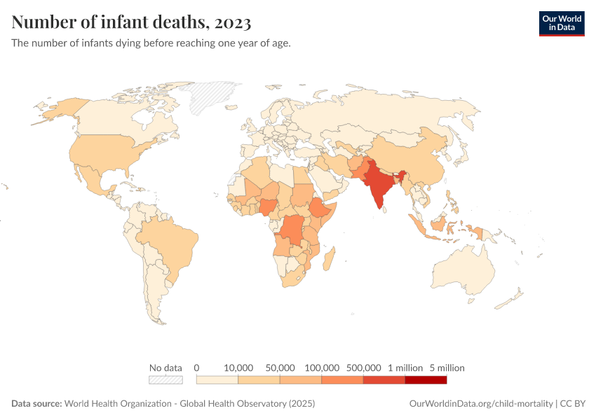 “Data Page: Number of infant deaths”. Our World in Data (2026). Data adapted from World Health Organization. Retrieved from https://multi-dim-redirects-index.owid.pages.dev/grapher/number-of-infant-deaths-gho [online resource]How to cite this data