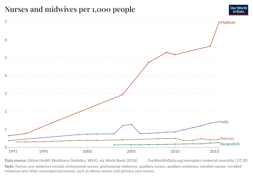 “Data Page: Nurses and midwives per 1,000 people”. Our World in Data (2026). Data adapted from World Health Organization (Global Health Workforce Statistics), OECD, and country data, via World Bank. Retrieved from https://multi-dim-redirects-index.owid.pages.dev/grapher/nurses-and-midwives-per-1000-people [online resource]How to cite this data