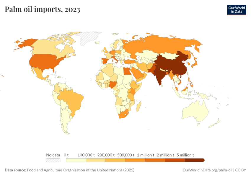 “Data Page: Imports of palm oil”. Our World in Data (2026). Data adapted from Food and Agriculture Organization of the United Nations. Retrieved from https://multi-dim-redirects-index.owid.pages.dev/grapher/palm-oil-imports [online resource]How to cite this data
