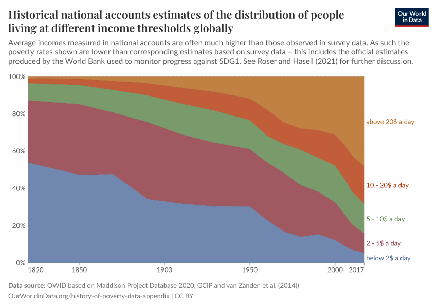 Joe Hasell (2019) - “Data appendix – The fight against global poverty: 200 years of progress and still a very long way to go” Published online at OurWorldinData.org. Retrieved from: 'https://multi-dim-redirects-index.owid.pages.dev/history-of-poverty-data-appendix' [Online Resource]BibTeX citation