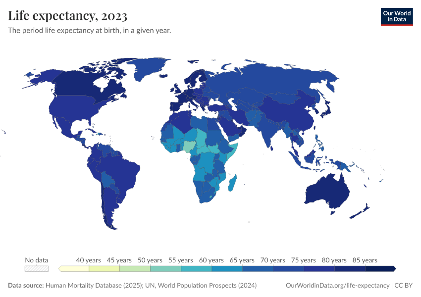 Saloni Dattani, Lucas Rodés-Guirao, Hannah Ritchie, Esteban Ortiz-Ospina, and Max Roser (2023) - “Life Expectancy” Published online at OurWorldinData.org. Retrieved from: 'https://multi-dim-redirects-index.owid.pages.dev/life-expectancy' [Online Resource]BibTeX citation