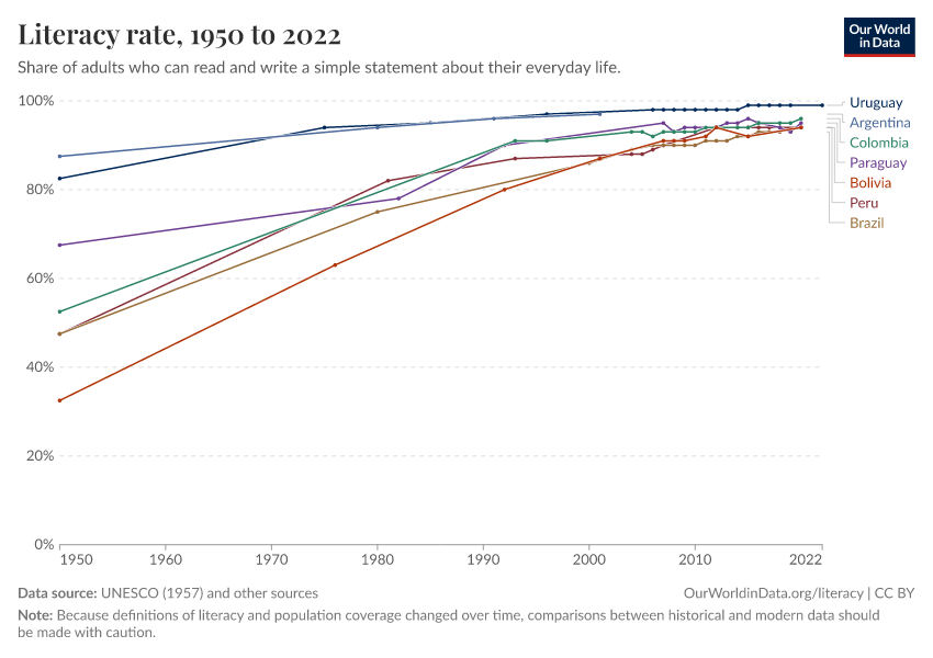 As can be seen, many nations have gained 40-50 percentage points in literacy during this period.