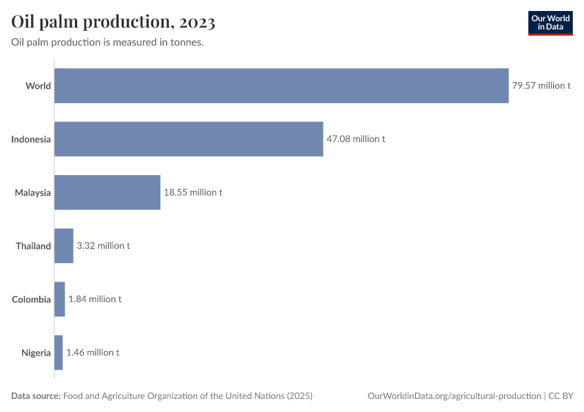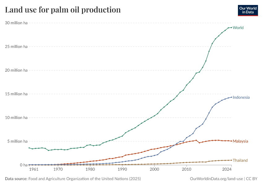 Hannah Ritchie (2021) - “Palm Oil” Published online at OurWorldinData.org. Retrieved from: 'https://multi-dim-redirects-index.owid.pages.dev/palm-oil' [Online Resource]BibTeX citation