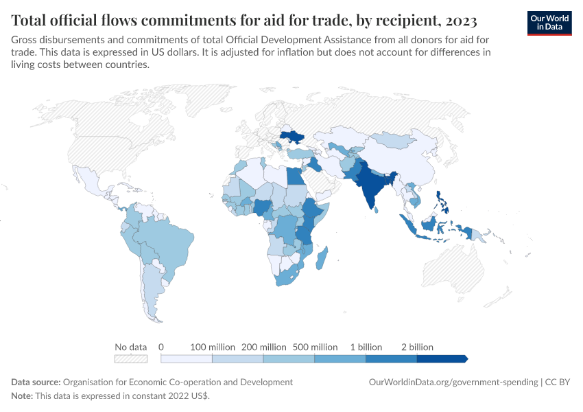 Aid for trade is measured as total official development assistance allocated to aid for trade in millions of constant 2020 United States dollars.