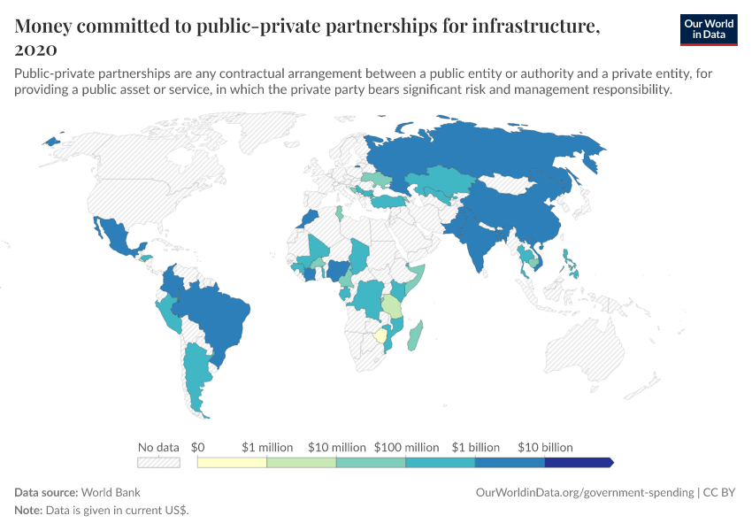 More research: Related data on this indicator, specifically related to partnerships in infrastructure projects is available at the Our World in Data topic page on Government Spending.