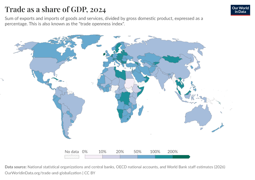 Esteban Ortiz-Ospina, Bertha Rohenkohl, Veronika Samborska, Simon Van Teutem, Diana Beltekian, and Max Roser (2018) - “Trade and Globalization” Published online at OurWorldinData.org. Retrieved from: 'https://multi-dim-redirects-index.owid.pages.dev/trade-and-globalization' [Online Resource]BibTeX citation